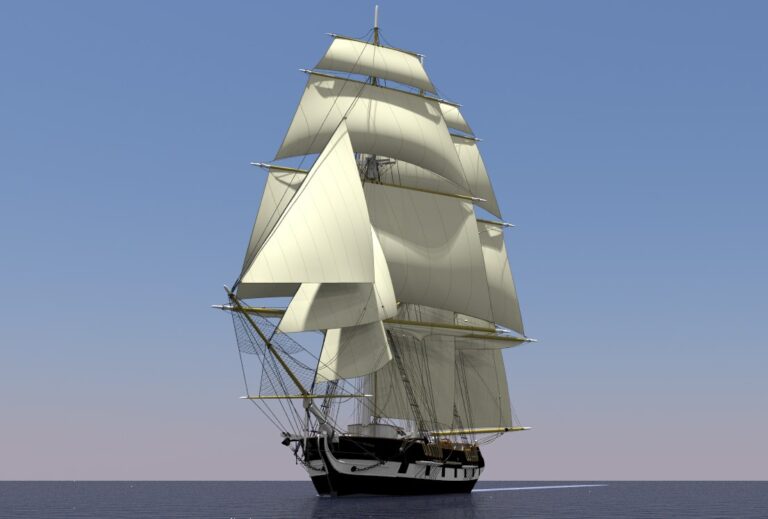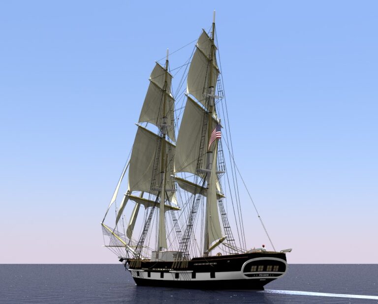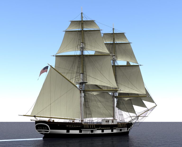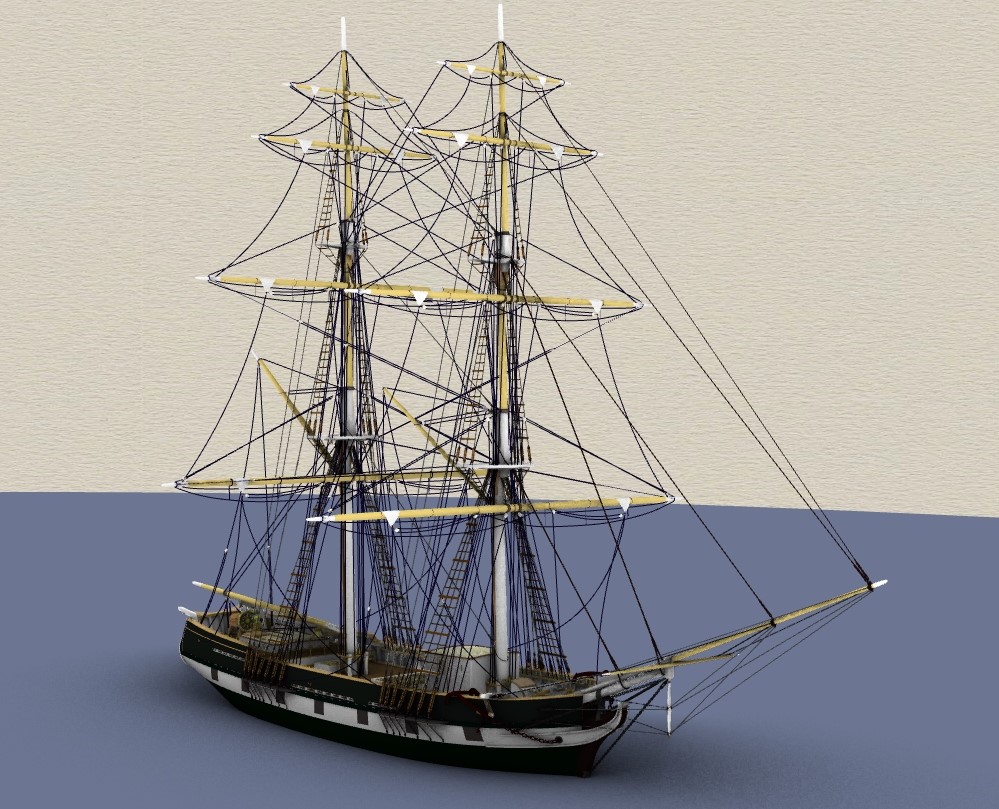 A typical New England styled trading brig-rigged ship of 1825.